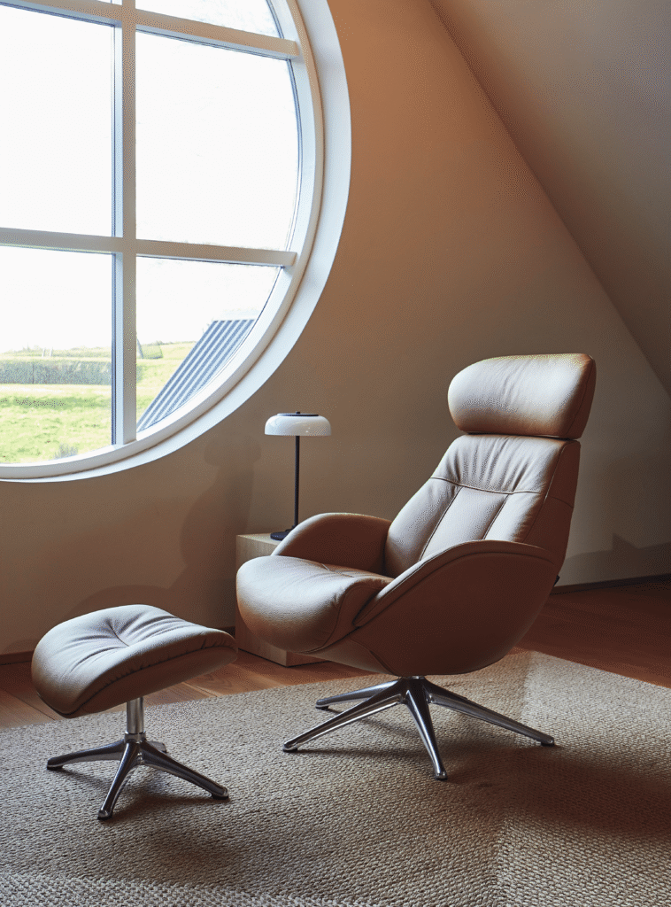Avec repose-pieds séparé, Dakota 0742 Modern Cognac Brown, pieds en aluminium poli