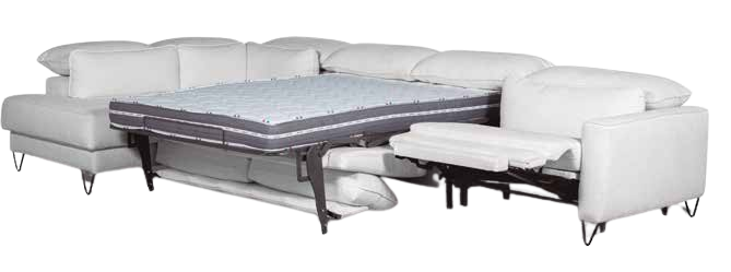 – Méridienne d’angle 103 + Couchage 140x190cm + Matelas HR16/164cm + Relax 88 + Accoudoir Acol 15 + 1 coussin 40x40cm compris. Décoration non comprise.