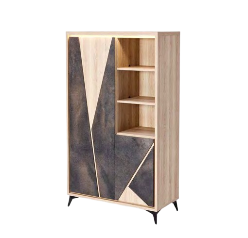 – 1 séparation, 1 tablette bois derrière chaque porte bois
